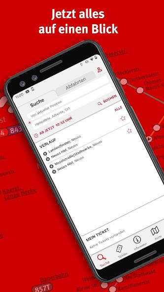 Приложение neuss mobil применяется к расписанию автобусов и поездов в общественном транспорте Neuss и всего Verkehrsverbund-rhein-Ruhr (VRR). Конечно, приложение также показывает вам подключение к соседним транспортным ассоциациям.
