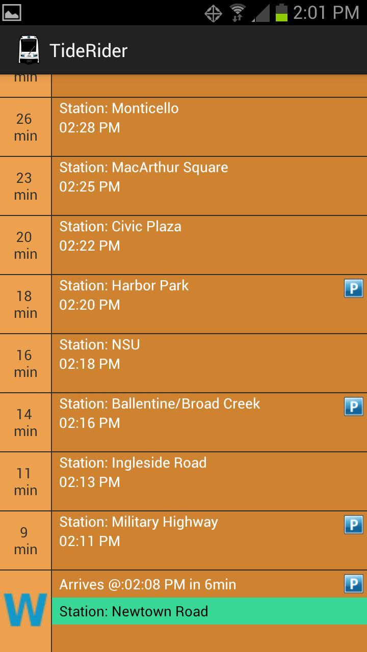 Это простая в использовании ссылку на график для «The Tide», общественной системы светового тракта HRT в Норфолке, штат Вирджиния. Это приложение отображает предполагаемое время прибытия и назначения для следующего поезда на станциях восток и запад от выбранной станции.