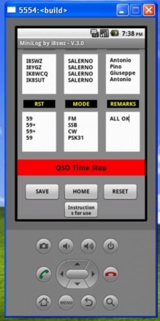 Этот мини -журнал позволяет записывать QSO за пределами их лачуги при работе с ноутбуками или портативными трансиверами. Прежде чем вы начнете его использовать, я рекомендую загрузить в Google Play, приложение под названием «Colornote», которое позволяет легко прочитать сохраненный файл. Если вы хотите зарегистрировать несколько QSO, QSO не сохраняет и не выходит из этого приложения, а для ввода, одно ниже другого, различные элементы, которые создают его (Time Start-Call-qth-name-rst-mode-remarks и время окончания). Как только QSO нажмите кнопку «Сохранить». Чтобы очистить поля MiniLog, используйте кнопку «Сбросить». Сохраненный файл находится в карте SD или Minisd смартфон или планшет. Если SD -карта отсутствует в вашем устройстве, вы не можете сохранить файл. Чтобы просмотреть зарегистрированный файл QSO, введите «файловый диспетчер» вашего устройства, а в корневом каталоге вы найдете файл с именем «minilog.txt», и он откроет приложение Colornote, и вы найдете сохраненные данные. Важно: если вы хотите продолжить деятельность с другим радиосвязи QSO, верните в файл minilog.txt и с длинным нажатием, затем нажмите кнопку «Копировать» и «Вставить» в правом нижнем углу экрана. Файл будет переименован в MiniLog (0) .txt, и он будет создавать новый файл miniLog.txt для других QSO и так далее. Чтобы уточнить, я доступен коллегам OM. Это приложение является 1.0, которое оно подлежит улучшению. Примечание. Чтобы сохранить QSO, не касайтесь кнопки «Сбросить»! Спасибо и лучшие из 73 с I8SWZ.
