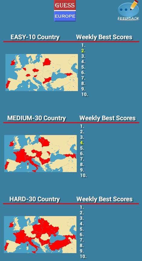 เกมปริศนาที่น่าขบขันสำหรับประเทศในยุโรป คุณจะทดสอบภูมิศาสตร์ยุโรปของคุณในขณะที่พยายามที่จะเห็นในรายการคะแนนสูงสุด เพียงเลือกตัวเลือกที่ถูกต้องระหว่างชื่อประเทศที่เน้นบนแผนที่ยุโรป