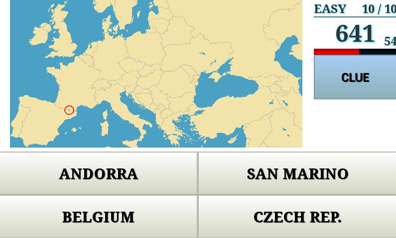 อย่าลืมว่าเวลานั้นกับคุณ คุณจะพลาดคะแนนถ้าคุณใช้เวลามากในการเดาชื่อประเทศ มีเบาะแสที่จะช่วยคุณ แต่ทำให้เกิดจุดน้อยลงอีกครั้ง พยายามที่จะรู้ชื่อของประเทศให้เร็วที่สุดเท่าที่จะทำได้