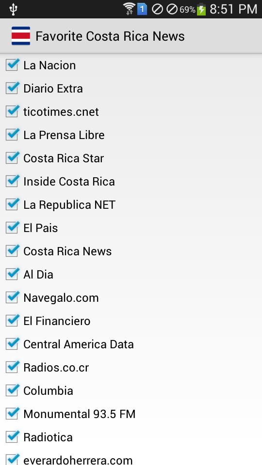 •เมนูที่ปรับแต่งได้เพื่อเลือก Costa Rica News ที่ชื่นชอบ