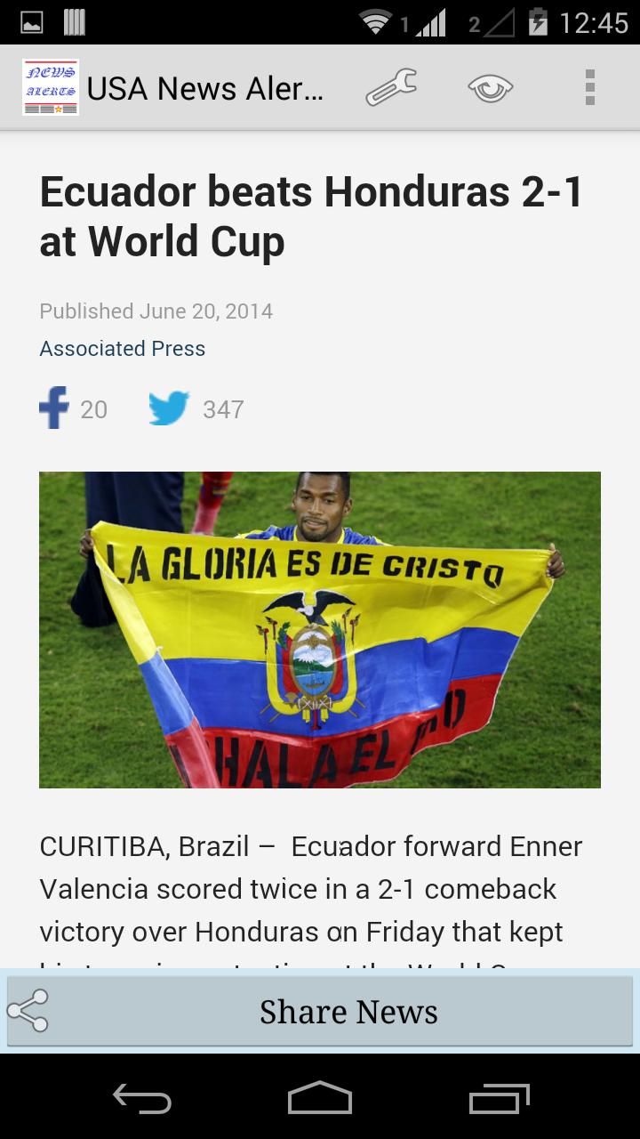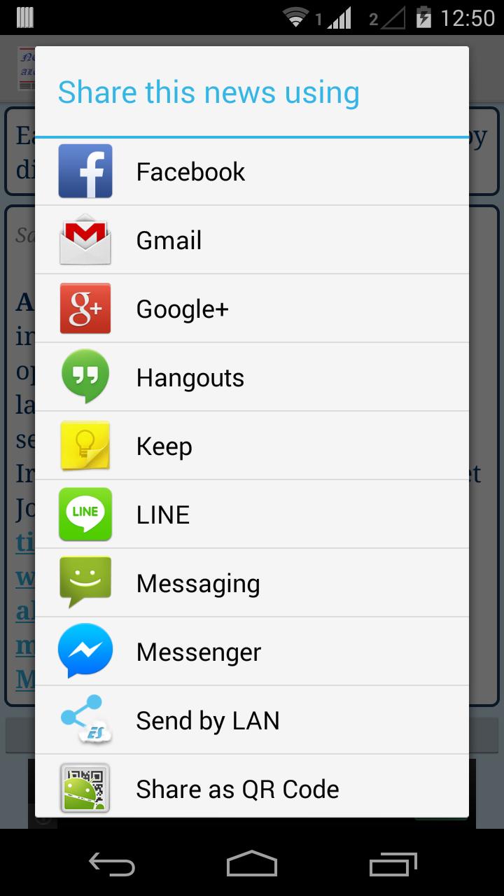 คุณสามารถแบ่งปันข่าวโดย SMS อีเมล ฯลฯ ผ่านแอพที่ติดตั้งเช่น Facebook, Google+ ฯลฯ