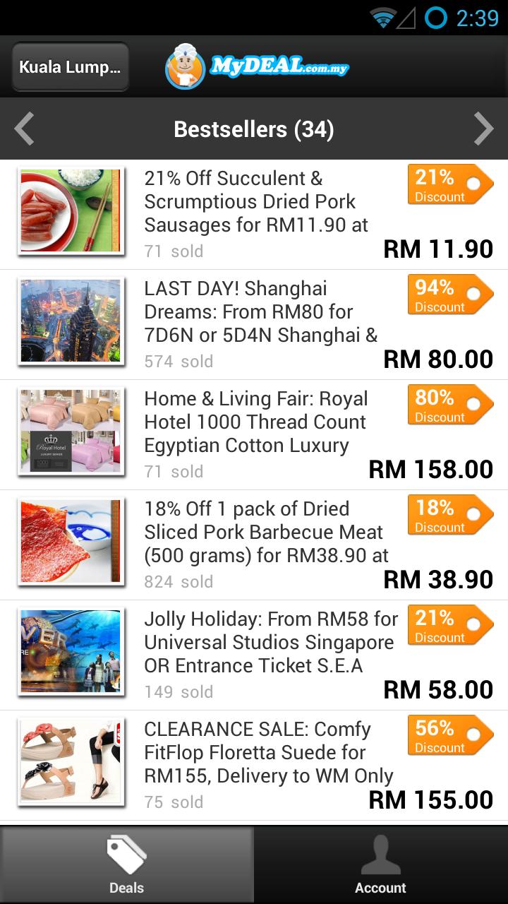 ร้านค้าออนไลน์ที่ชื่นชอบของมาเลเซียอยู่ใน Android แล้ว! ค้นหาข้อเสนอล่าสุดในราคาที่ไม่สามารถเอาชนะได้ที่ปลายนิ้วของคุณ ซื้อของสำหรับข้อเสนอที่คุณชื่นชอบไม่ว่าจะเป็นการหลบหนีไปยังสถานที่พักผ่อนที่คุณชื่นชอบหรือไปทานอาหารค่ำสุดโรแมนติกกับคนที่คุณรัก Deal.com.sg มีข้อเสนอที่เหมาะสมสำหรับคุณ!