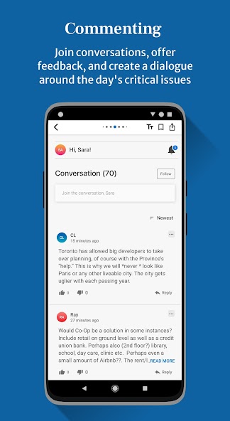 - MyLocal Tab - เลือกชุมชนได้มากถึงเจ็ดชุมชนเพื่อรับความคุ้มครองข่าวท้องถิ่นปัญหาและเหตุการณ์เฉพาะสำหรับชุมชนที่คุณเลือก