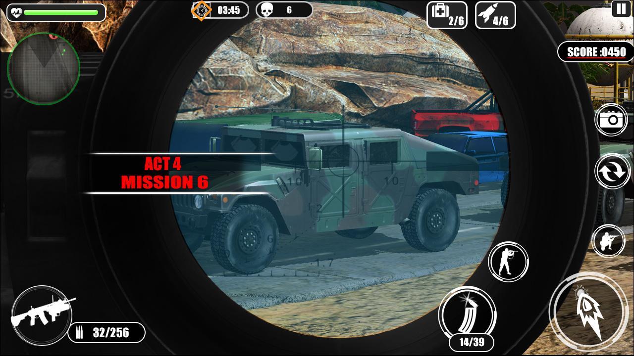 คุณต้องเป็นอมตะที่จะฆ่าคนฆ่าทุกพื้นที่หอคอยและการยึดมั่นที่แข็งแกร่งของกองกำลังปีศาจที่อันตรายที่สุดของเรา ศัตรูกำลังใช้ Sniper Master ของพวกเขาสำหรับการปฏิบัติการที่ซ่อนอยู่ในเขตสงครามและเราขาดการยิงมือซุ่มยิงแม้ว่าเราจะมีกองทัพที่ทันสมัยที่สุดในโลก การโจมตีด้วยยอดเขาบนภูเขาครั้งสุดท้ายของเรานั้นไม่ประสบความสำเร็จและคุณเป็นนักยิงปืนซุ่มยิงคนเดียวในพื้นที่นั้น แต่น่าประหลาดใจที่คุณได้ปกป้องพื้นที่และยิงยิงและยิงกองกำลังทางทะเลจากศัตรูจากมือปืนอเมริกันของคุณ คอมมานโดอยู่รอดจนกว่าการเสริมแรงจะมาถึงประเทศของเราขึ้นอยู่กับคุณ นอกจากนี้คุณยังสามารถใช้ Bazooka สำหรับ Heli Destroyer และเติมเต็มความต้องการของคุณโดยใช้ปืนกลด้วยไฟหนักขนาดใหญ่ หน้าที่ของคุณในฐานะนักฆ่าชาวอเมริกันในการซุ่มยิงกำหนดเป้าหมายศัตรูทั้งหมดและฆ่าศัตรูนาวิกโยธิน