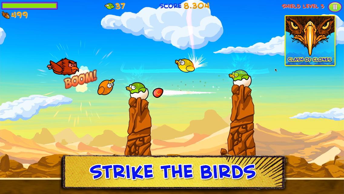 ปัดอย่างรวดเร็วด้วยนิ้วมือของคุณเหมือนนินจาและฆ่านกด้วยสายฟ้า ปล่อยให้โคลนนกอินทรีที่เชื่อถือได้ของคุณปะทะกับความโกรธแค้นโคลนผลิตนกและต่อสู้กับนกสีม่วงยักษ์ซึ่งเป็นแม่ของโคลนนิ่ง flappy