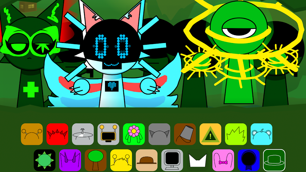 - พื้นหลังที่เป็นเอกลักษณ์พร้อมเอฟเฟกต์เสียงที่ดื่มด่ำกับ Sprunki และ Sprunk