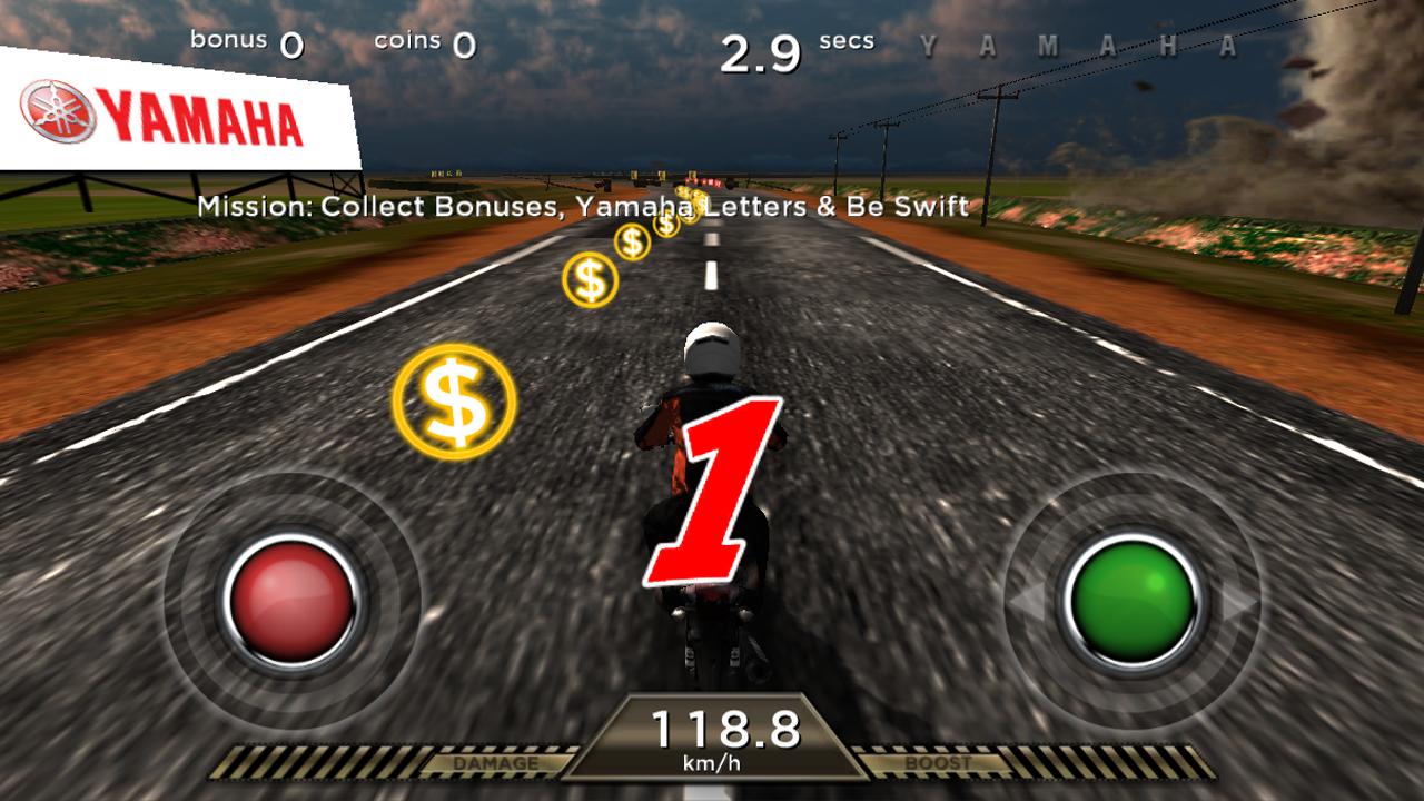 Tornado Run เกมตั้งอยู่ในสภาพแวดล้อม 3 มิติเต็มรูปแบบและขึ้นอยู่กับแนวคิดสร้างสรรค์และเรื่องราวของโฆษณาทางโทรทัศน์ยามาฮ่า Lagenda 115Z (แสดงในมาเลเซีย)