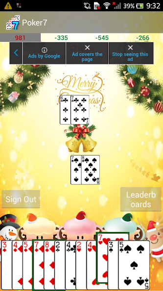 3. เล่นเกมจนกว่าการ์ดทั้งหมดจะเล่นหรือปิดฝาเสร็จ การ์ดปกสำหรับคะแนนเชิงลบและผู้เล่นทุกคนได้รับคะแนนของบัตรปกของผู้เล่นคนอื่น หากการ์ดโป๊กเกอร์ทั้งหมดเล่นออกมาทุกคนจะได้รับ +364 คะแนน หากไม่มีใครเสร็จผู้เล่นที่มีคะแนนน้อยที่สุดของบัตรปกจะไม่ได้รับคะแนนโทษ
