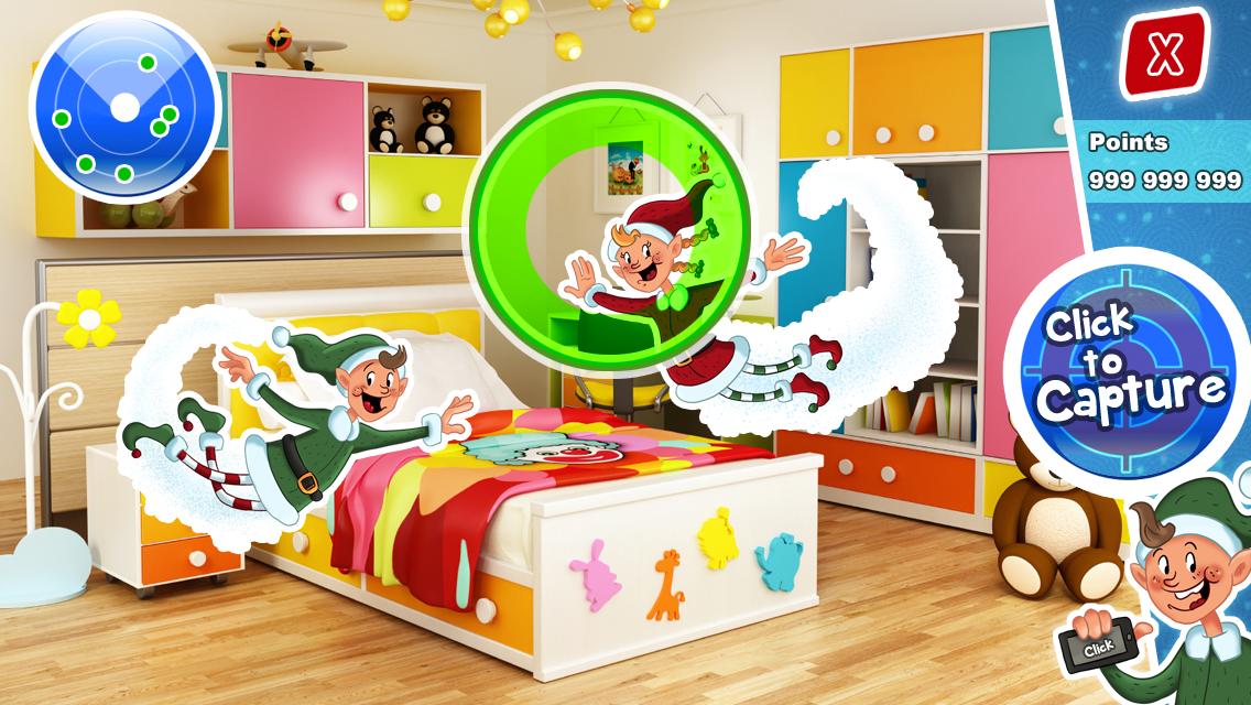 เด็ก ๆ ใช้กล้องเพื่อค้นหาเอลฟ์บินบนหน้าจอ ช่วงเวลาที่พวกเขาเห็นเอลฟ์พวกเขาต้องเคลื่อนไหวเพื่อให้เอลฟ์อยู่ในวงกลมสีเขียว เด็ก ๆ คลิกเพื่อจับเอลฟ์