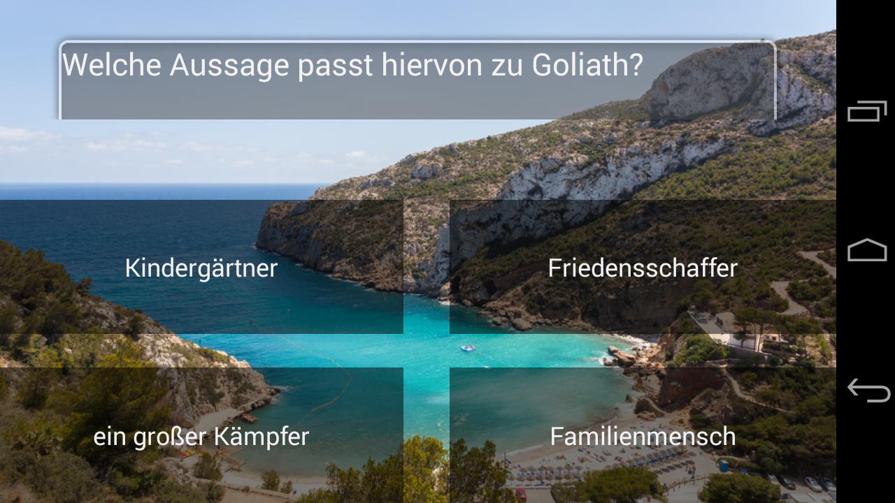 ด้วยแอพนี้คุณสามารถขยายความรู้ในพระคัมภีร์และดวลกับเพื่อน ๆ ในผู้เล่นหลายคน คุณสามารถตรวจสอบความรู้ในพระคัมภีร์ของคุณในคำถามกว่า 1,000 ข้อ มีนักแสดงตลกสามคนที่ให้ความช่วยเหลือในรอบ 15 รอบ แล้วคุณยังรออะไรอยู่?