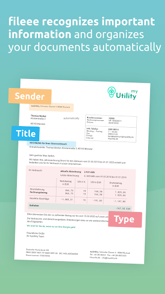 智能分析 - fileee分析您的文档并自动识别重要信息,例如发件人,文档类型(发票,合同等)和截止日期。