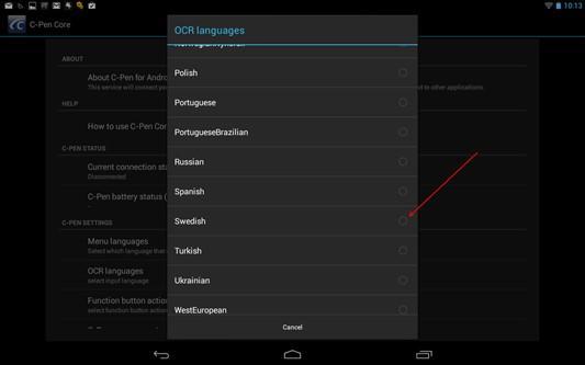 如果掃描到其他應用程序,則需要輸入C-Pen Core設置並觸發“ AnysoftKeyboard(c-pen Ready)”的下載。在Google Play上使用標準的AnySoftKeyboard語言包來本地化AnySoftKeyboard。