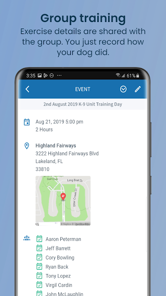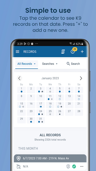 享受方便,易於使用的記錄保存系統,圍繞狗養處理者和代理商的需求而設計。該應用程序通過消除紙質記錄和冗餘數據輸入來節省您的時間。實時同步可以通過手機立即更新您的培訓,教室和部署日誌,包括照片和位置數據。