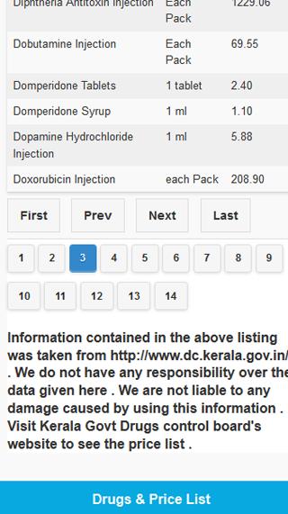 喀拉拉邦用於藥物的各種藥物的價格清單。價格表從http://www.dc.kerala.gov.in/獲取