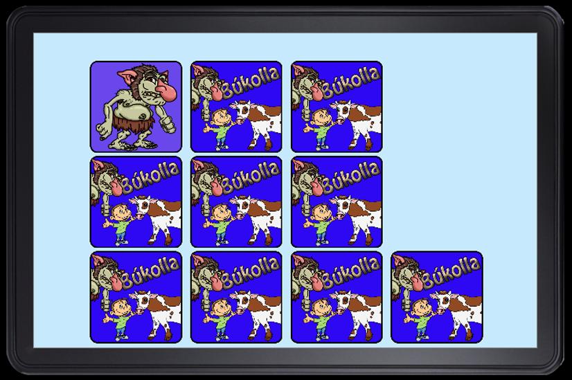 古典記憶遊戲。找到比賽,以太貨12張或8張卡。 Bukolla故事,Gunnar,Jón,Eva,Búkolla和The Troll的所有角色。讓您的孩子享受這個易於理解的匹配遊戲。